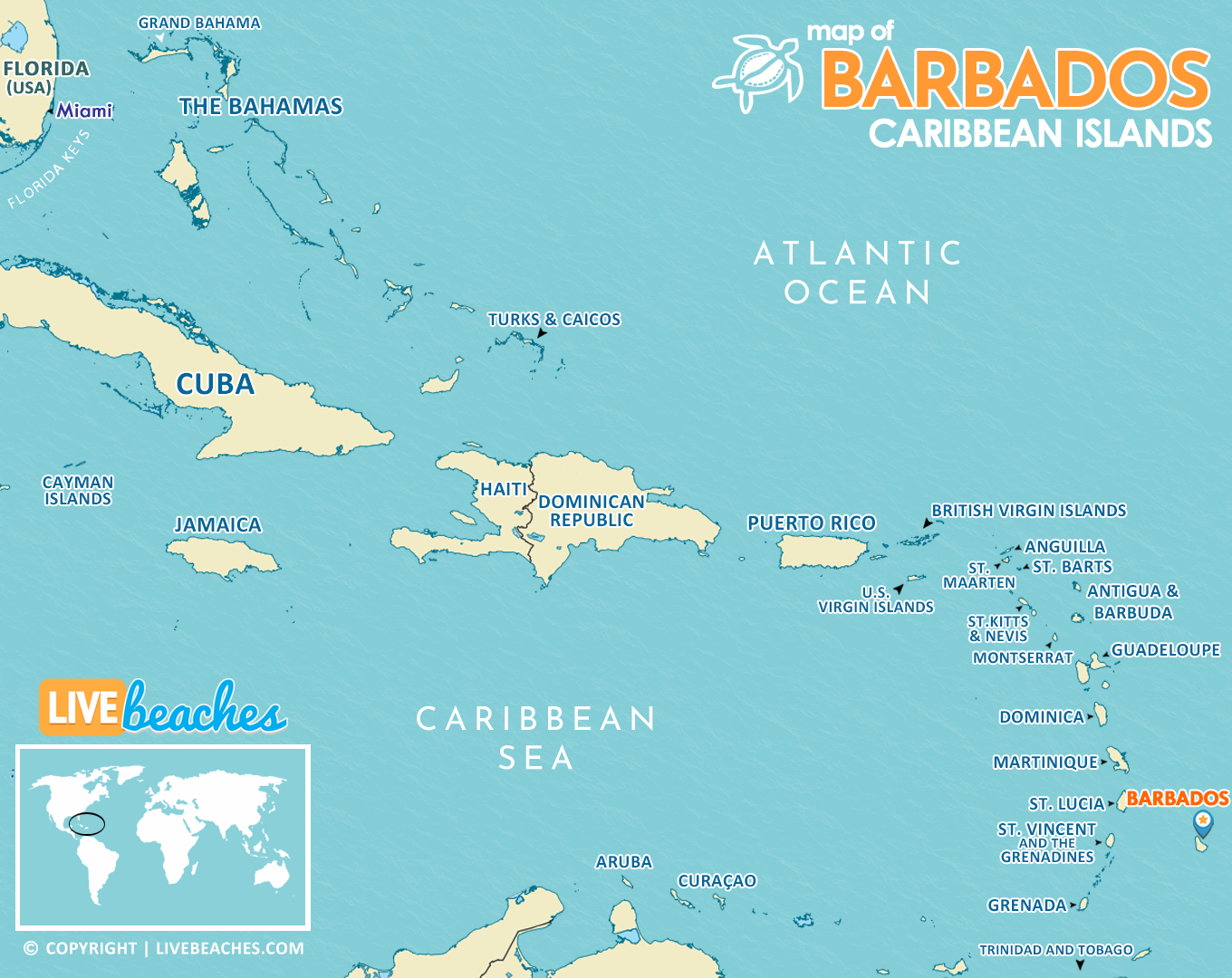 This map of Barbados in the Caribbean is a helpful guide for first time visitors to get to know the island and resort areas. Use this map of Barbados as a resource to discover nearby beaches, surrounding islands, and popular places to visit.