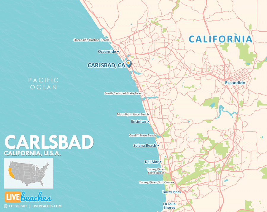 This map of Carlsbad, California is a helpful guide for first time visitors to get to know the California coast. Use this map of Carlsbad, CA as a resource to discover nearby beaches, coastal towns, and popular places to visit.