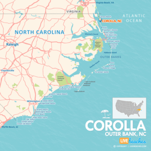 Corolla is located at the northern tip of the Outer Banks, 30 miles north of Nags Head, NC. Corolla (“Kuh-RAH-Luh”) is a perfect beach destination for a family vacation. Known for its relaxed pace and vast stretches of natural beach, Corolla is the perfect place to relax and unwind.