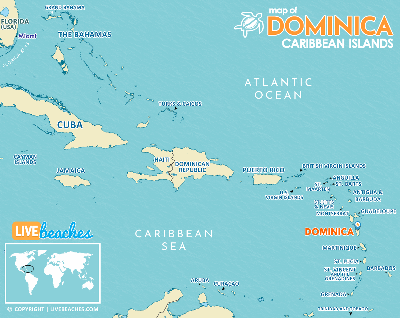 This map of Dominica in the Caribbean is a helpful guide for first time visitors to get to know the island and resort areas. Use this map of Dominica as a resource to discover nearby beaches, surrounding islands, and popular places to visit.