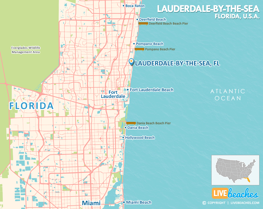 Map of Lauderdale-by-the-Sea and popular nearby beaches in Florida. Use these regional maps as a guide to learn the area and points of interest along the Florida Coast.