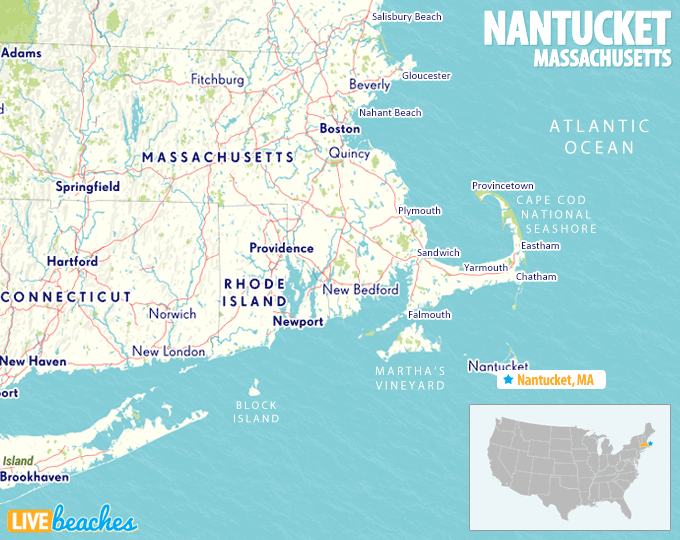This map of Nantucket, Massachusetts is a helpful guide for first time visitors to get to know Cape Cod and the New England coastline. Use this map of Nantucket as a resource to discover nearby beaches, coastal towns, and popular places to visit.