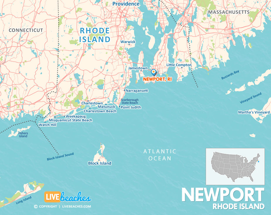 Map of Newport, Rhode Island, Nearby Beaches Coastal Towns, Large Printable