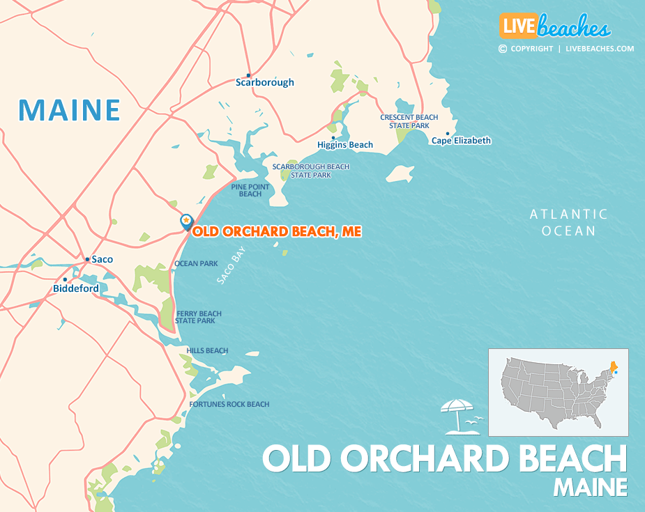 Map of Old Orchard Beach and coastal towns in Maine. Use these maps as a guide to discover the area and nearby points of interest. This printable travel map of Old Orchard Beach, ME is a helpful guide for first time visitors to get to know the beaches in Maine.