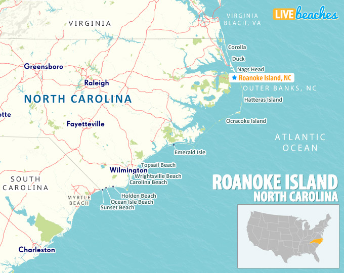 Map of Roanoke Island, North Carolina, Outer Banks - LiveBeaches.com