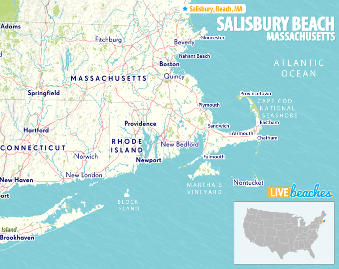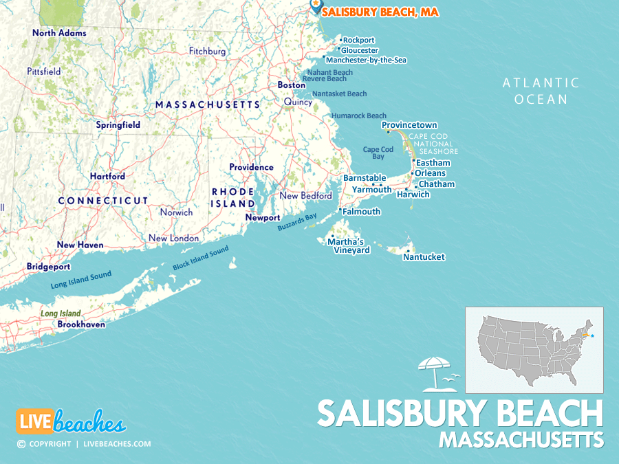 This map of Salisbury Beach, Massachusetts is a helpful guide for first time visitors to get to know the New England coastline. Use this map of Salisbury Beach as a resource to discover nearby beaches, coastal towns, and popular places to visit.
