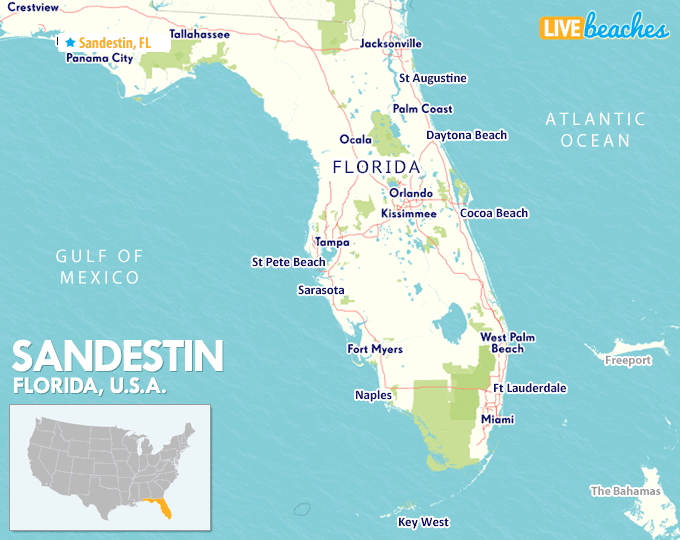 Map of Sandestin and popular nearby beaches in Florida. Use these regional maps as a guide to learn the area and points of interest along the Florida Coast.