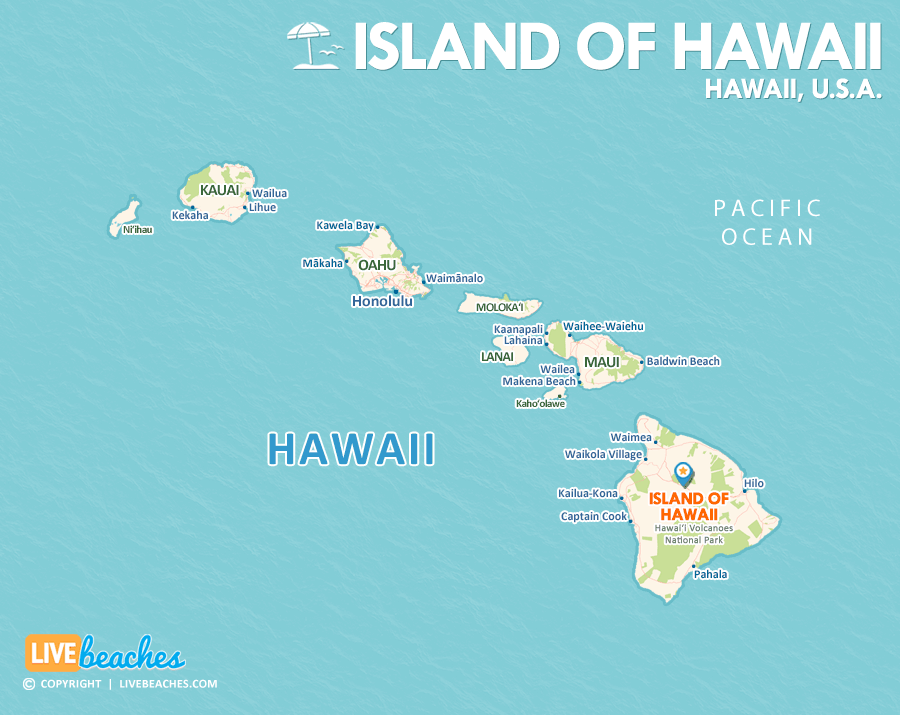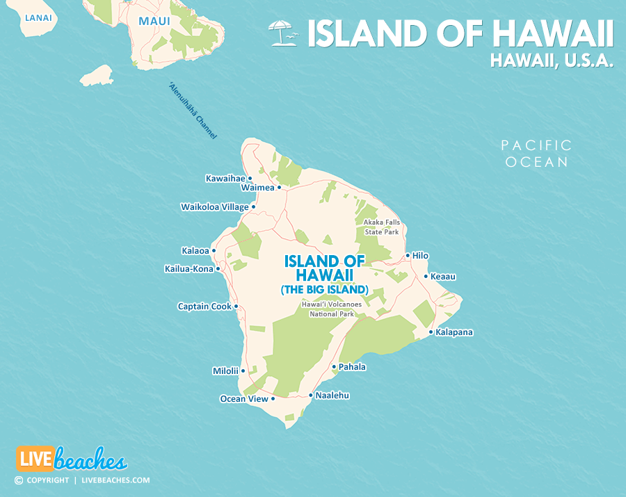 Island of Hawaii Map, The Big Island, Hawaiian Islands, USA, Travel Guide | LiveBeaches.com