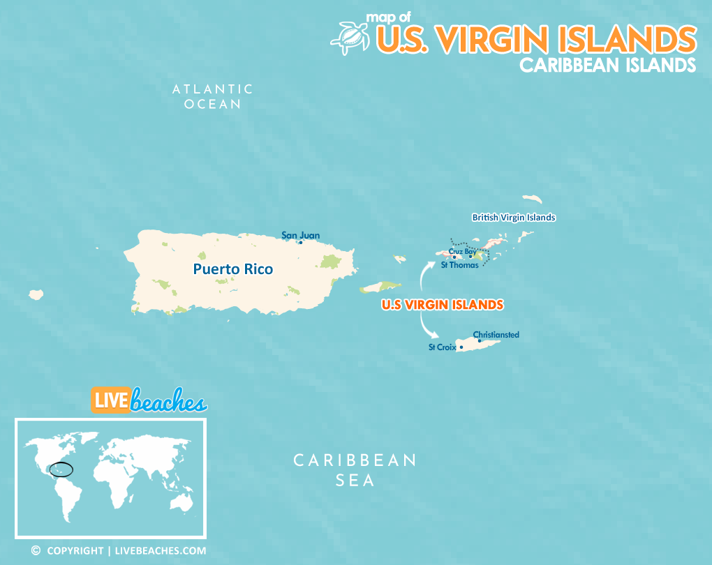 If you are planning to visit U.S. Virgin Islands in the Caribbean, use these maps as a guide to discover popular beaches, surrounding islands, and nearby cities. This printable travel map of U.S. Virgin Islands is a helpful guide for first time visitors to get to know the Caribbean Islands.