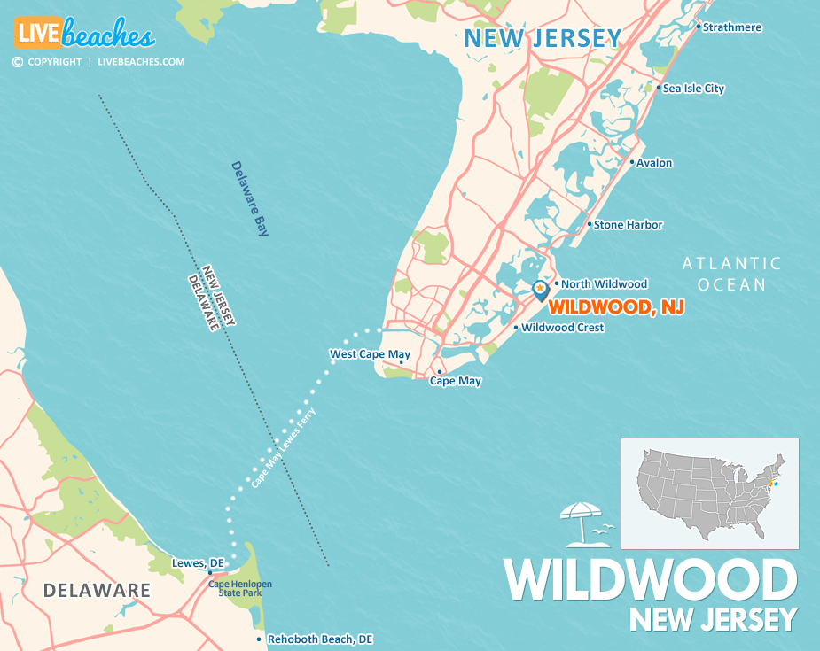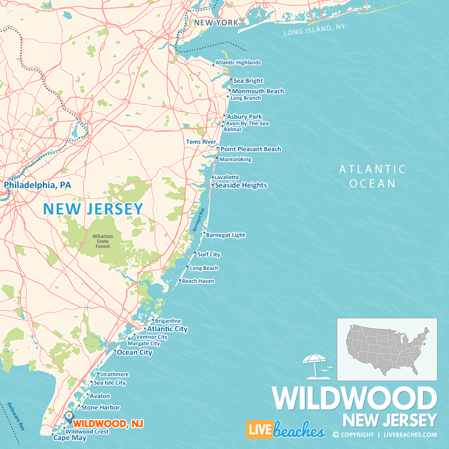 Wildwood NJ Map, Visit Jersey Shore | Nearby Beaches - LiveBeaches.com