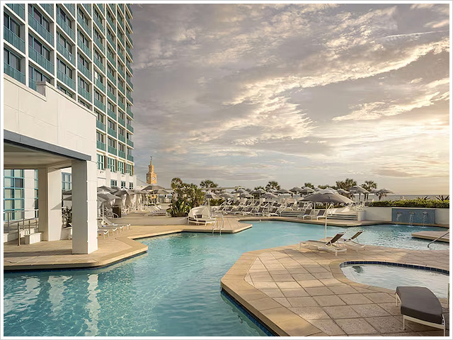 The Hilton Daytona Beach Oceanfront Resort is known for its direct beach access with many rooms offering ocean views. Situated directly on Daytona Beach’s only traffic-free beach offering walkable access to dining, shopping, and entertainment. The resort features 744 guest rooms, suites, and cabanas.