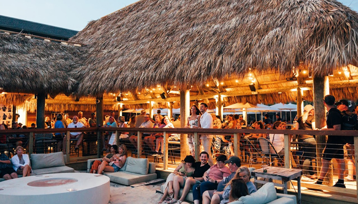 The famous Tiki Hut provides beachfront drinks and live music daily. A poolside bar and grill serves up casual bites, while the laid-back patios and fire pits offer a relaxed atmosphere to enjoy the coastal breeze. It’s a vibrant, beach-forward experience.