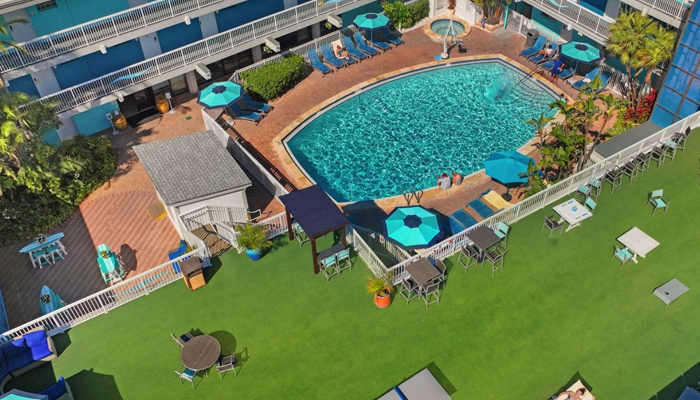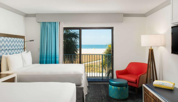 Guests can enjoy two heated outdoor pools, a whirlpool spa, a rooftop sun deck, and on-site dining at Sloppy Joe’s on the Beach, which features live music and beach games. The resort’s central location provides easy access to nearby attractions such as John’s Pass Village & Boardwalk, Fort De Soto Park, and downtown St. Petersburg.