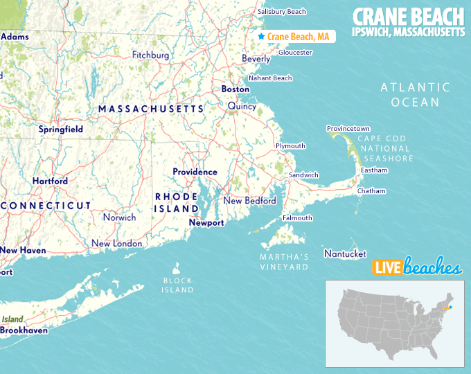 Map of Crane Beach, Massachusetts - LiveBeaches.com