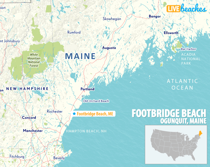 This area map of Footbridge Beach, Maine includes nearby beaches and points of interest.