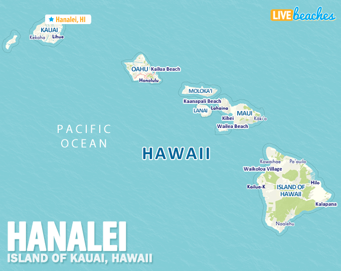This area map of Hanalei includes nearby islands, popular beaches and points of interest. View live beach webcams in Hanalei and check the current weather, surf conditions, and beach activity from your favorite islands in Hawaii.
