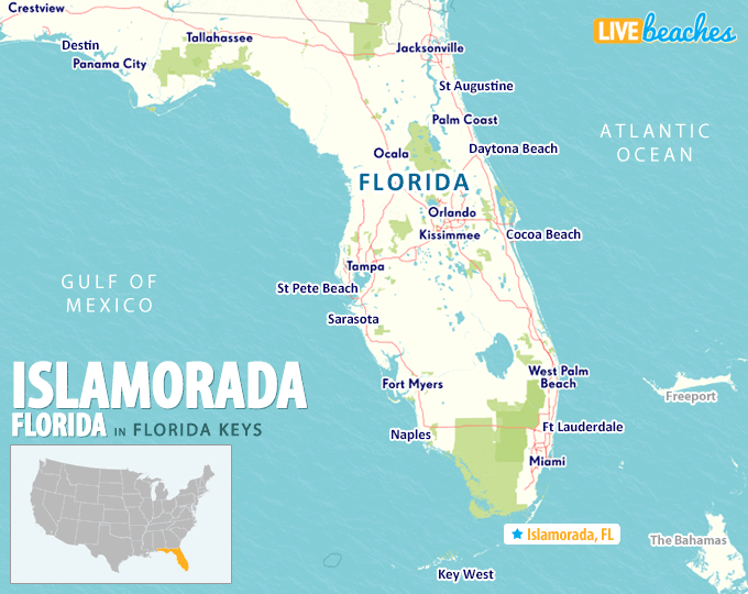 This area map of Islamorada includes nearby beaches and points of interest. View live beach webcams in Islamorada and check the current weather, surf conditions, and beach activity from your favorite Florida beaches.