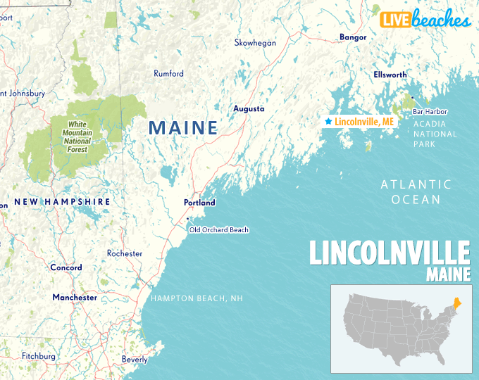 This area map of Lincolnville, Maine includes nearby beaches and points of interest.