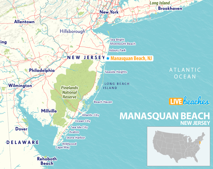 Manasquan Beach area map and visitors information. Our guide includes essential planning information such as accommodations, things to do, local forecasts and average weather temperatures. View live webcams of current weather conditions and see what’s happening around town.