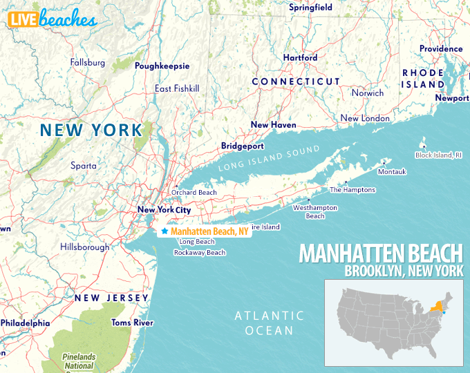 This area map of Manhattan Beach in Brooklyn, New York includes nearby beaches and points of interest.