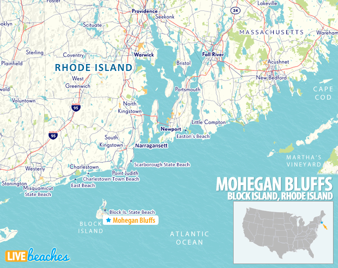 Map of Mohegan Bluffs, Block Island, Rhode Island - LiveBeaches.com