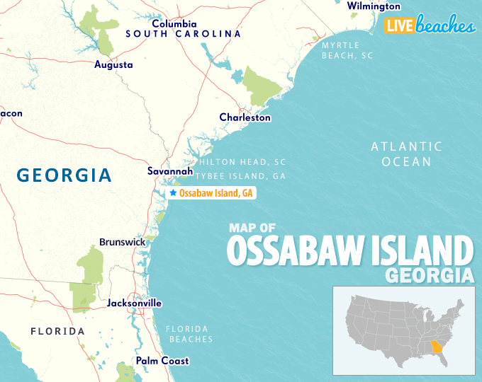 This area map of Ossabaw Island includes nearby beaches and points of interest. View live beach webcams in Georgia and check the current weather, surf conditions, and scenic views from the Georgia coastline.