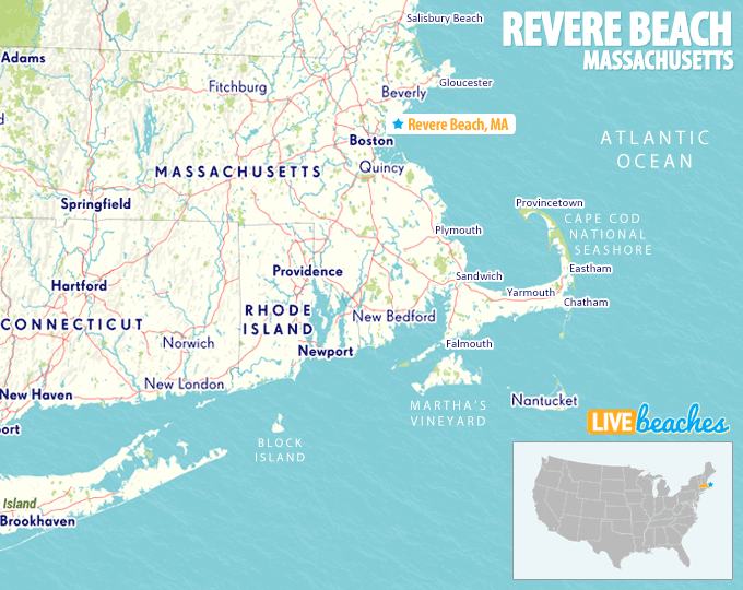 This area map of Revere Beach, Massachusetts includes nearby beaches and points of interest.