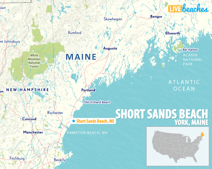 This area map of Short Sands Beach in York, Maine includes nearby beaches and points of interest.