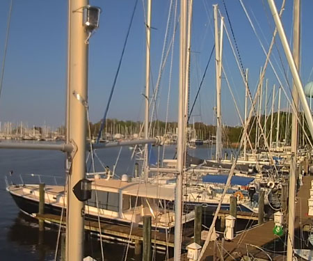 This webcam is located at Bert Jabin Yacht Yard in Annapolis, Maryland. Bert Jabin Yacht Yard is nestled in the heart of Back Creek in Annapolis, shielded from strong winds and currents, with more than 200 in-water slips. Check the current weather and live views from your favorite beaches and places to visit in Maryland.