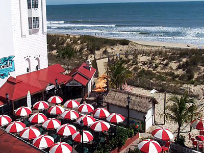 This live webcam in Ocean City shows a view of a beautiful ocean and sandy beach from The Castle in the Sand Hotel located on 37th Street in Ocean City, Maryland. Check the current weather and live views from your favorite beaches and places to visit in Maryland.