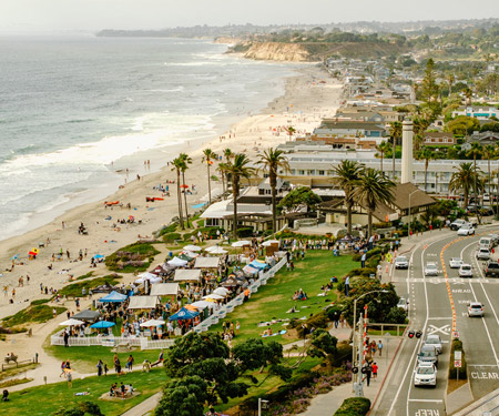 Live webcam of the beach and scenic view from Del Mar Village Association in Del Mar near San Diego, CA. You can expect near perfect weather year round in Del Mar. Ideal for surfing, hiking, going to the beach, and biking. View live weather, surf conditions, and enjoy scenic views from popular coastal towns in California. Check in anytime to see what’s happening at the beach.