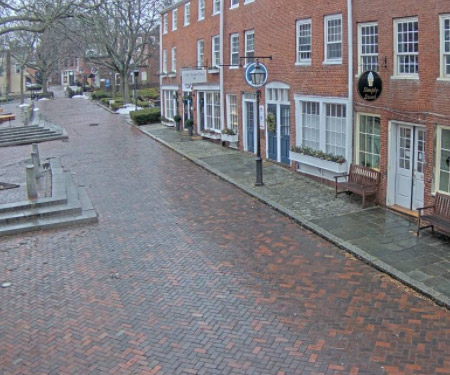 Enjoy this webcam of Inn Street in historic downtown Newburyport, MA. The Newburyport Historic District includes most of the historic downtown area of Newburyport, Massachusetts, which consits of Merrimack River, Marlboro Street, Ashland Street and High Streets. Visitors are attracted to this charming, historic city with cobblestone streets and brick sidewalks.