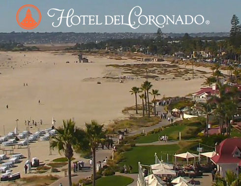Live webcam from Hotel del Coronado. Our live beach cams offer a glimpse of the breathtaking views from Hotel del Coronado! Visit this page to view a live webcam from the beautiful Coronado beach hotel and see why we’re the perfect location for your next vacation! View live weather, surf conditions, and enjoy scenic views from popular coastal towns in California. Check in anytime to see what’s happening at the beach.