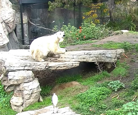 Enjoy the live Polar Bear Cam at San Diego Zoo from 7:30 a.m. to 7:30 p.m. Pacific Time, you’re watching the live cam while it’s daytime in San Diego. Some interesting facts about polar bears – unlike brown bears and black bears, polar bears do not hibernate. When not hunting, polar bears are resting, perhaps as much as 20 hours a day. A polar bear can swim at a speed of up to 6 miles per hour.
