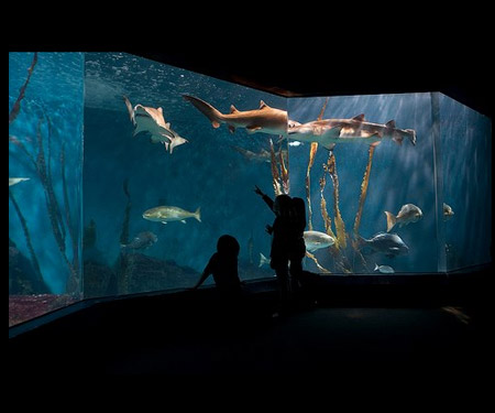 Live webcam from Maritime Aquarium at Norwalk. See what’s happening inside Ocean Beyond the Sound exhibit, with 7-foot sand tiger sharks, large rays, and other fish. The Maritime Aquarium at Norwalk exhibits feature over 8,000 animals. The journey begins along a freshwater river and the shallow waters of the salt marsh, then moves into deeper and deeper habitats out to the open ocean. The aquarium features a 4k state-of-the-art theater that features two films throughout the day.