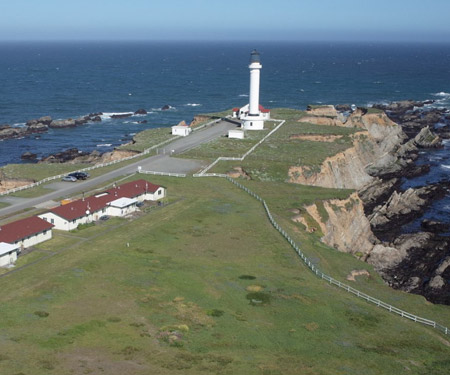 Live webcam from the Point Arena Lighthouse in Point Arena, CA. Climb to the top of the 115′ tall Lighthouse Tower and enjoy spectacular views of the Pacific Ocean or explore the 23 acre Outdoor Museum with its one-of-a-kind stone installations and art, native plant gardens, blufftop hiking trails and amazing viewing spots to look for whales and seabirds.