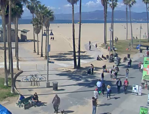 Live webcam from Sidewalk Cafe in Venice Beach. The Sidewalk Cafe is great place to eat, drink and people watch. Serving a variety of American, Mexican and Italian cuisine, in addition to signature drinks from the full bar, Sidewalk Cafe is open for breakfast, lunch and dinner. View live weather, surf conditions, and enjoy scenic views from popular coastal towns in California. Check in anytime to see what’s happening at the beach.